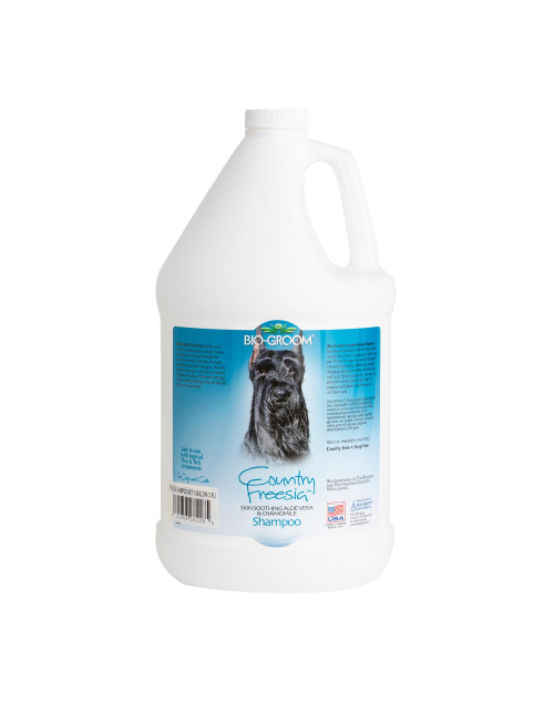 Country Freesia™ Dog Shampoo is made from natural ingredients. It features skin-soothing chamomile and aloe vera, and is made with the finest freesia scents. The all-natural aloe vera moisturizes and sooths, while the soy protein strengthens and conditions the coat and skin.